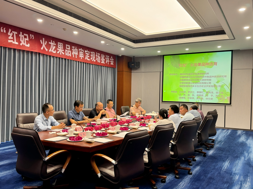 根據(jù)福建省農(nóng)業(yè)科學(xué)院果樹研究所等選育單位的申請(qǐng),2025年7月19日,全國(guó)熱帶作物品種審定委員會(huì)組織鑒評(píng)專家組,在福建省福清市陽(yáng)下街道作坊村火龍果生產(chǎn)基地對(duì)申報(bào)的“紅妃”火龍果新品種進(jìn)行了現(xiàn)場(chǎng)鑒評(píng)。