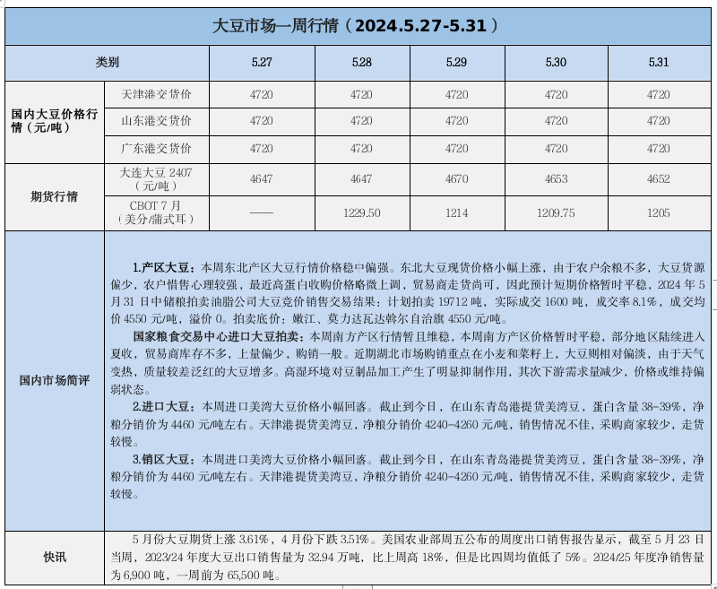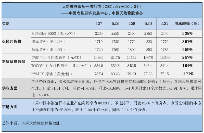 天然橡膠、大豆、玉米市場一周行情(2024.05.27-05.31)