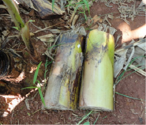 (二)誘集監(jiān)測與誘殺防治:田間利用切割的香蕉秸稈進行誘集,以監(jiān)測象甲發(fā)生情況;利用香蕉象甲信息素誘劑制成誘捕器進行誘捕殺滅。