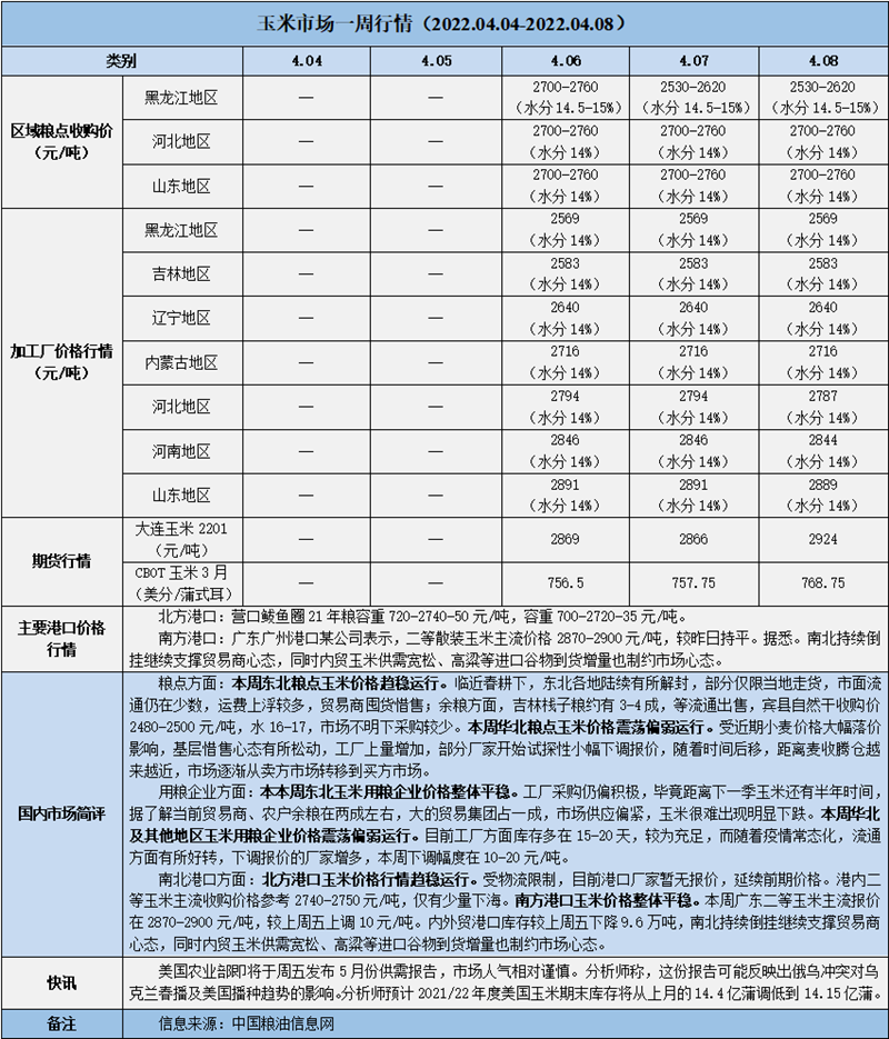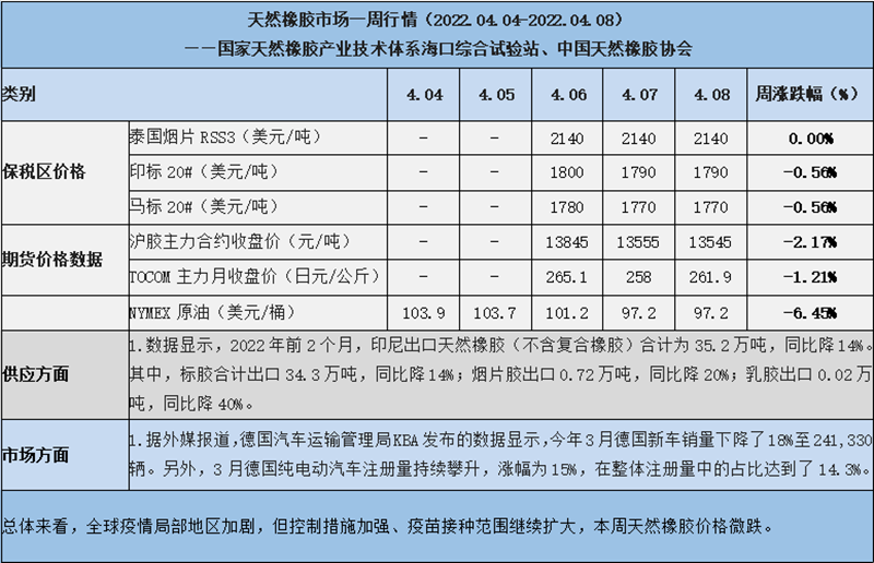 天然橡膠、大豆、玉米市場(chǎng)一周行情(2022.04.04-04.08)