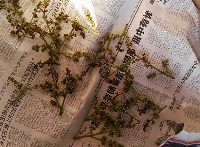 將被害的花穗用報(bào)紙包好,靜待其化蛹