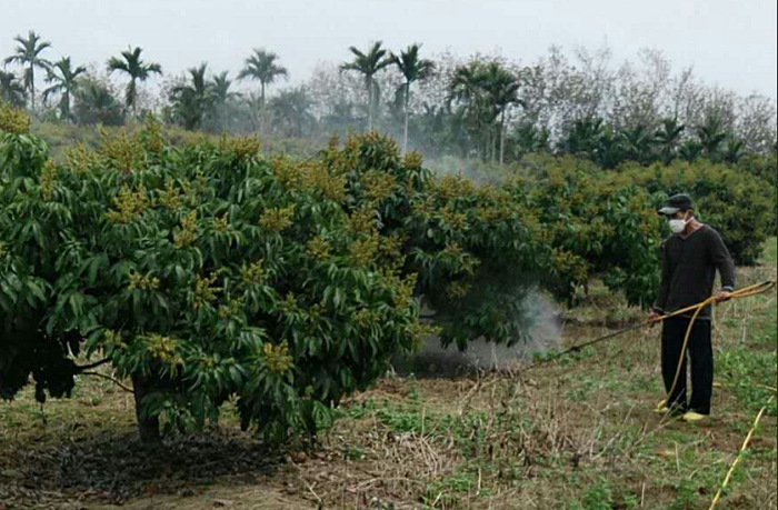 二、成蟲(chóng)羽化高峰期進(jìn)行施藥,噴殺荔枝蒂蛀蟲(chóng)成蟲(chóng)。推薦使用藥劑為:具有強(qiáng)觸殺作用的擬除蟲(chóng)菊酯,或5%啶蟲(chóng)脒乳油,或荔豐保,使用所推薦劑量進(jìn)行內(nèi)膛噴霧防治(見(jiàn)下圖)。