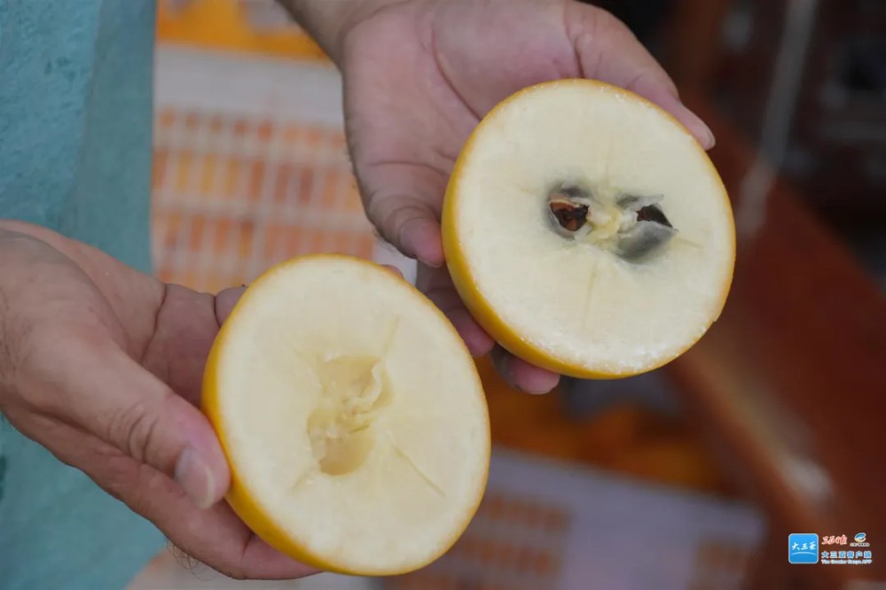 選擇在三亞種植,氣候是首要優(yōu)勢?!盎剡x址在北緯18度以南區(qū)域,正是看中了三亞冬季溫暖、少有寒害的獨特氣候條件?!焙伪貍ソ榻B。該基地于2023年5月啟動建設(shè),總面積200余畝,其中黃晶果種植面積達(dá)150畝。尤為關(guān)鍵的是,基地引進(jìn)的是經(jīng)過改良的優(yōu)新品種,相較于傳統(tǒng)品種,具有耐儲運(yùn)、抗病蟲害能力強(qiáng)、適應(yīng)性廣等顯著優(yōu)點,有效克服了傳統(tǒng)黃晶果易氧化褐變、儲存期短的技術(shù)瓶頸。