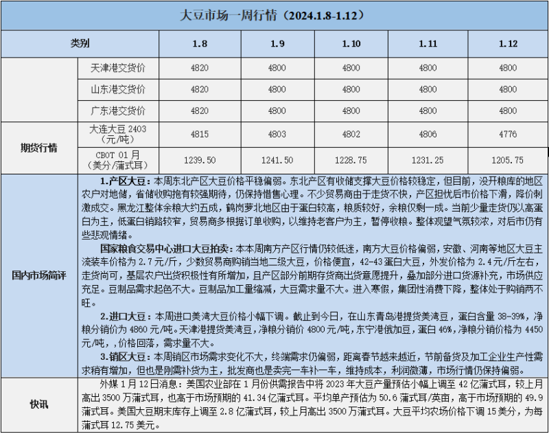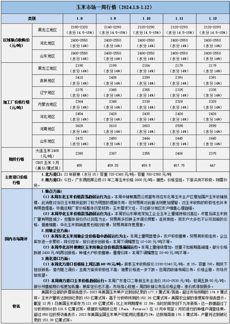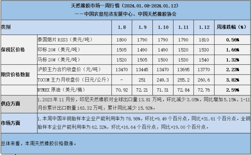 天然橡膠、大豆、玉米市場一周行情(2024.1.8-1.12)