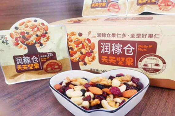 潤(rùn)稼倉天天堅(jiān)果:潤(rùn)稼倉天天堅(jiān)果根據(jù)不同年齡人群每日攝取堅(jiān)果營(yíng)養(yǎng)區(qū)間25g-30g,選取中間參數(shù)27g,采用4種果仁,2種果干配料,營(yíng)養(yǎng)搭配均衡,富含鈣、維生素、不飽和脂肪酸等,包裝攜帶方便,更適合廣大消費(fèi)者食用。
