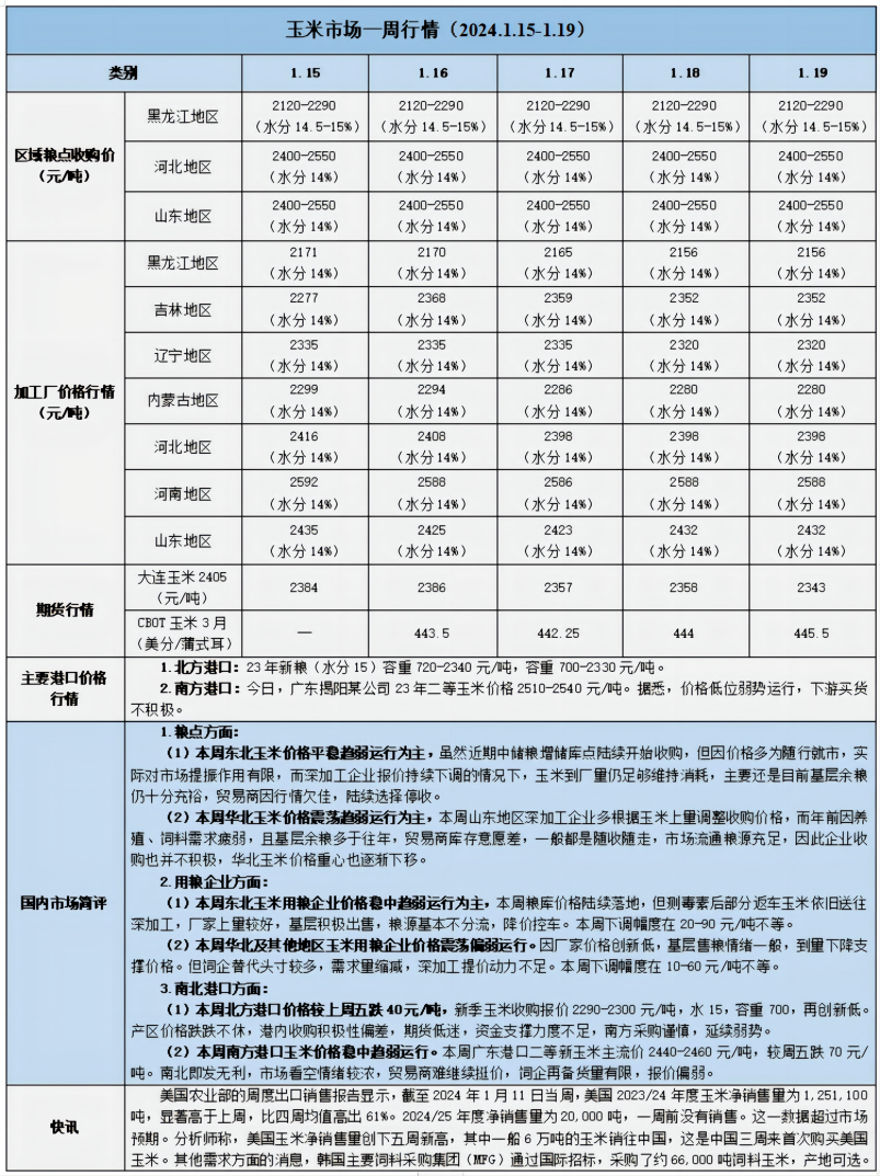 天然橡膠、大豆、玉米市場(chǎng)一周行情(2024.1.15-1.19)