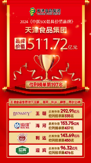 天津食品集團(tuán)再次榮登“中國(guó)500最具價(jià)值品牌”榜單榜