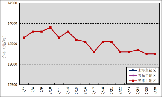 圖2 2022年2月國內(nèi)主銷區(qū)天然橡膠價(jià)格走勢(shì)