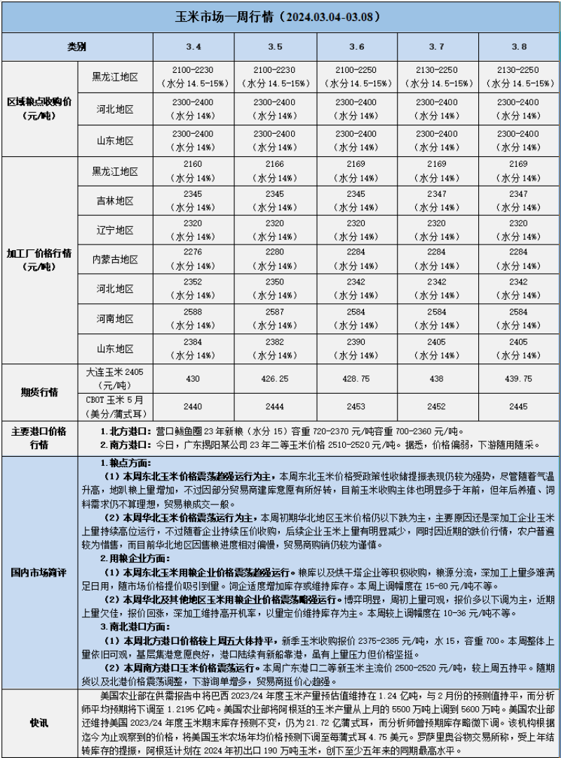 天然橡膠、大豆、玉米市場一周行情(2024.03.04-03.08)
