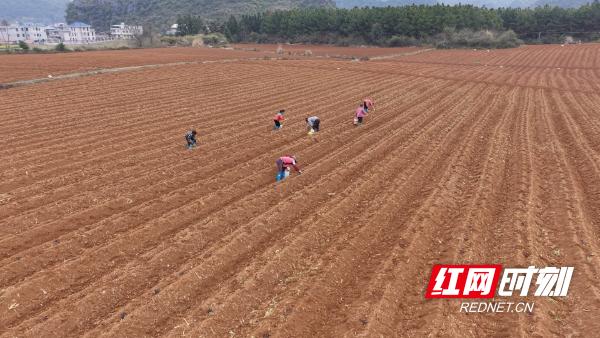 初春農(nóng)事忙,春耕啟新程。3月11日,在湖南省江永縣瀟浦鎮(zhèn)回崗村200余畝木薯種植基地里,翻耕后的田地起好一列列疏松壟臺,20余名村民正有條不紊地移栽木薯。大家手持木棍丈量株距,將一節(jié)節(jié)木薯莖平放覆土,田間地頭一派繁忙的春耕生產(chǎn)景象。