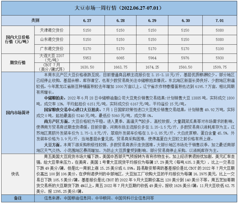 天然橡膠、大豆、玉米市場一周行情(2022.06.27-07.01)