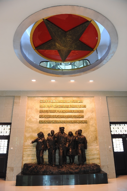 序廳展有主題雕塑,雕塑是開發(fā)建設(shè)北大荒群體中的復(fù)轉(zhuǎn)官兵、知識青年、支邊青年、科技人員和現(xiàn)代青年五位代表人物的形象,主題雕塑上方是紅興隆博物館的主題詞。
