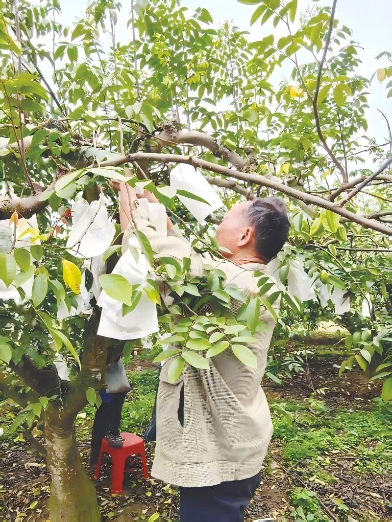 果農(nóng)給楊桃套上保護(hù)袋。記者李宗文 攝
