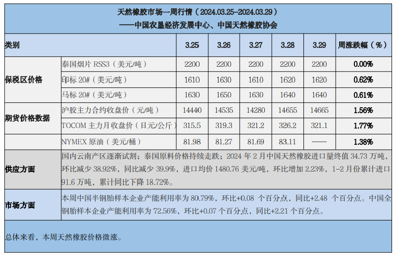 天然橡膠、大豆、玉米市場(chǎng)一周行情(2024.03.25-03.29)