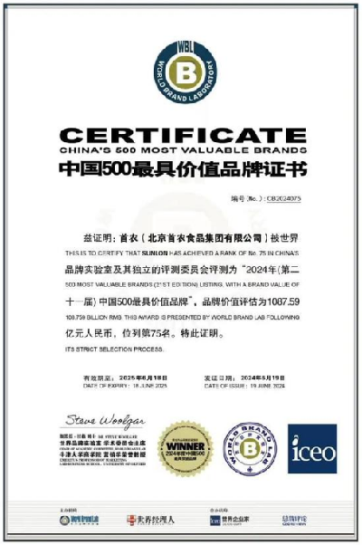 6月19日,第二十一屆“世界品牌大會(huì)”在北京舉行,會(huì)上發(fā)布了2024年《中國(guó)500最具價(jià)值品牌》分析報(bào)告。在這份基于財(cái)務(wù)數(shù)據(jù)、品牌強(qiáng)度和消費(fèi)者行為分析的年度報(bào)告中,“首農(nóng)”2024年的品牌價(jià)值為1087.59億元,總排名位列500強(qiáng)第75位,品牌價(jià)值突破千億元。