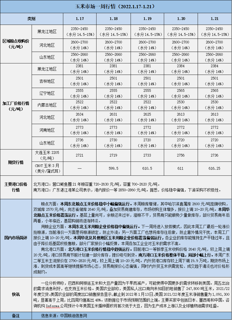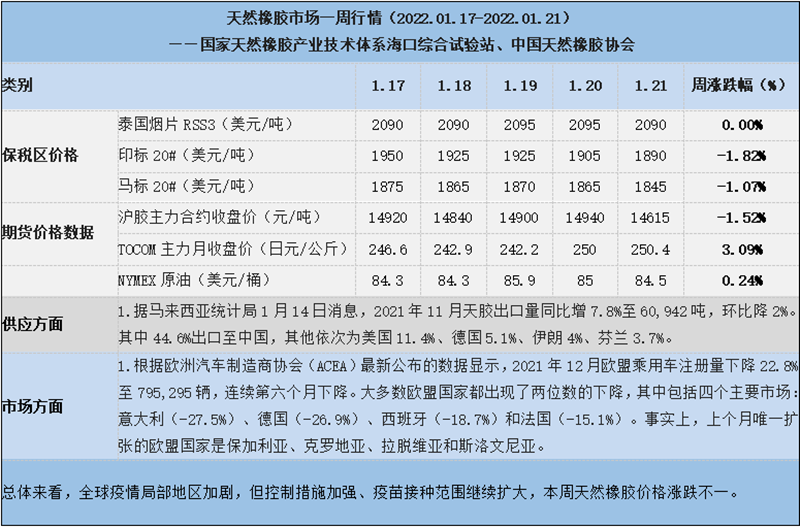 天然橡膠、大豆、玉米市場(chǎng)一周行情(2022.01.17-01.21)