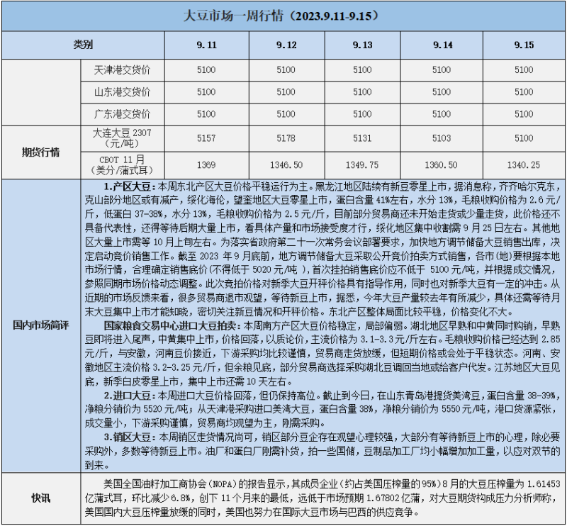天然橡膠、大豆、玉米市場一周行情(2023.09.11-09.15)
