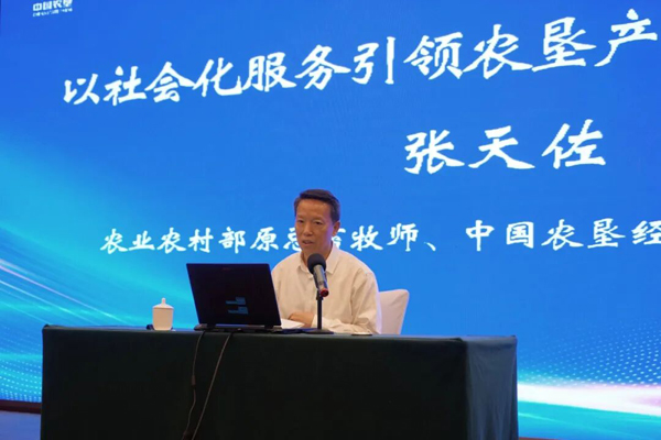 張?zhí)熳糇黝}為《以社會化服務引領農(nóng)墾產(chǎn)業(yè)高質(zhì)量發(fā)展》的主旨報告。報告從農(nóng)業(yè)生產(chǎn)的基本經(jīng)營形式、農(nóng)業(yè)現(xiàn)代化的本質(zhì)、中國式農(nóng)業(yè)現(xiàn)代化路子怎么走、如何加速我國農(nóng)業(yè)現(xiàn)代化進程、社會化服務發(fā)展具備的機遇等六個方面進行了系統(tǒng)闡述,強調(diào)“要大力發(fā)展專業(yè)化社會化服務,使之成為引領農(nóng)墾產(chǎn)業(yè)高質(zhì)量發(fā)展的牛鼻子”,所提出的推進社會化服務發(fā)展的8個策略和方法為深化農(nóng)墾社會化服務、推動產(chǎn)業(yè)升級提供了重要的指導和參考。