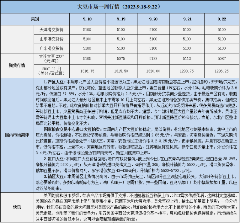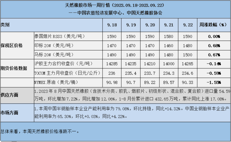 天然橡膠、大豆、玉米市場一周行情(2023.09.18-09.22)