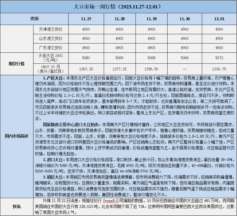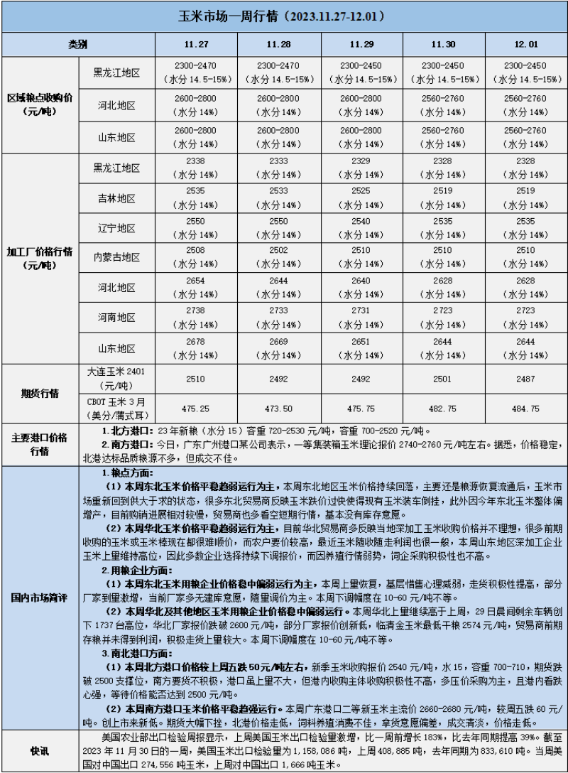 天然橡膠、大豆、玉米市場一周行情(2023.11.27-12.01)