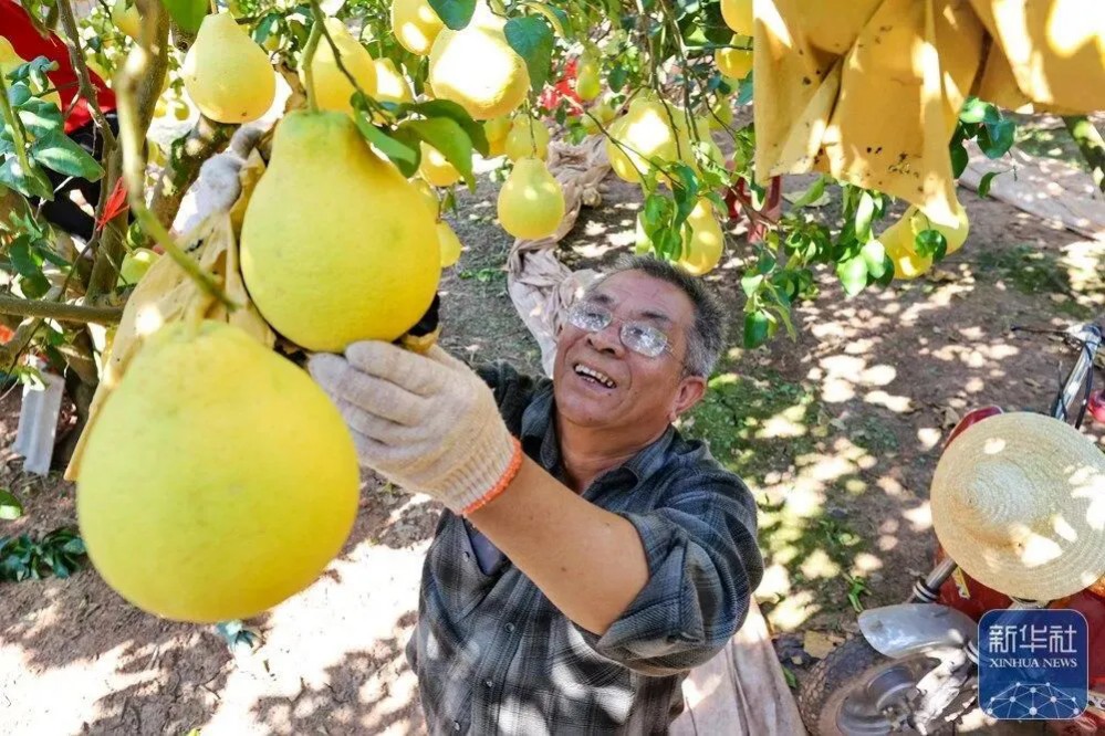 ↑果農(nóng)采摘沙田柚(龍海強 攝)