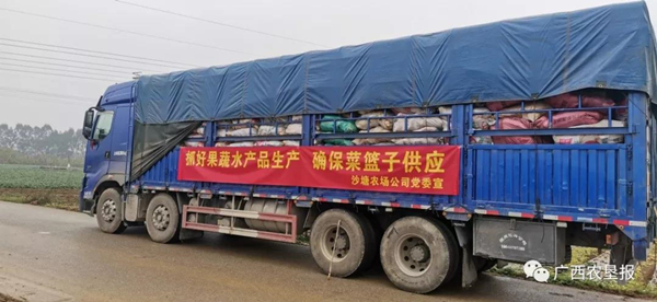 2月12日,沙塘農(nóng)場公司第一批50噸新鮮蘿卜打包裝車發(fā)往南寧,與廣西各地新鮮果蔬一起,通過直達冷鏈專列運往湖北武漢。同日,另一批20噸蔬菜整車發(fā)往廣東市場,為穩(wěn)定國內(nèi)蔬菜市場供應(yīng)貢獻農(nóng)墾力量,彰顯國企擔(dān)當(dāng)。