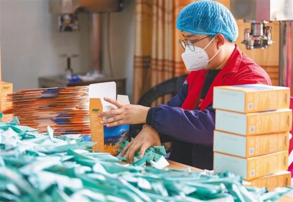 在海南農(nóng)墾母山咖啡廠,工作人員將咖啡打包裝箱。袁琛 攝