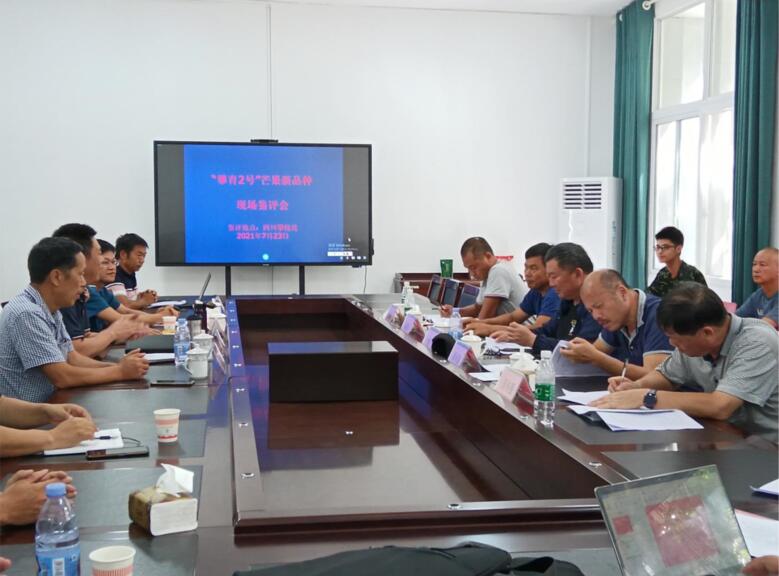 根據(jù)攀枝花市農(nóng)林科學(xué)研究院等單位申請(qǐng),2021年7月22-23日,全國(guó)熱帶作物品種審定委員會(huì)組織芒果鑒評(píng)專(zhuān)家組,在四川省攀枝花市對(duì)該單位申報(bào)的‘攀育2號(hào)’芒果新品種進(jìn)行了現(xiàn)場(chǎng)鑒評(píng)。