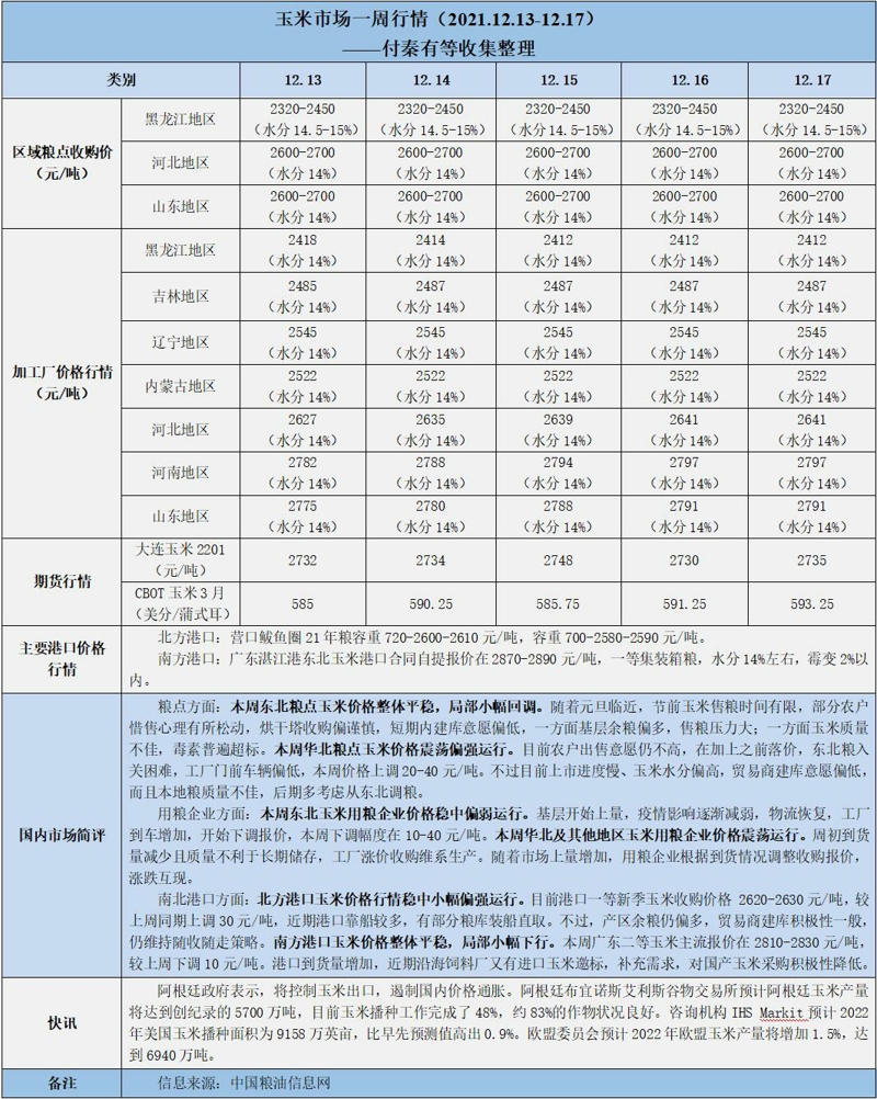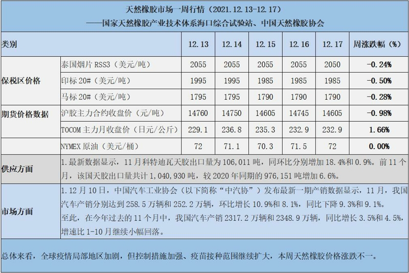 天然橡膠、大豆、玉米市場(chǎng)一周行情(2021.12.13-12.17)