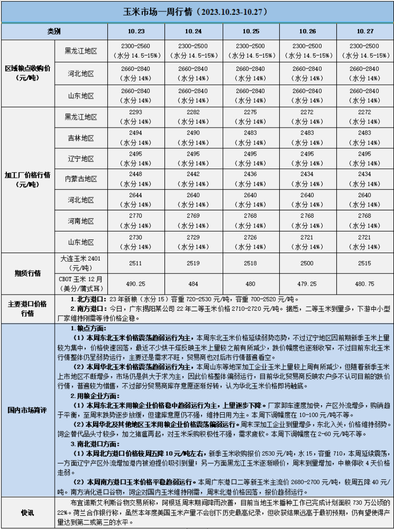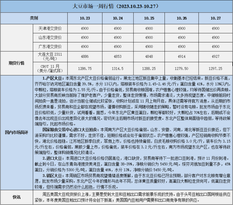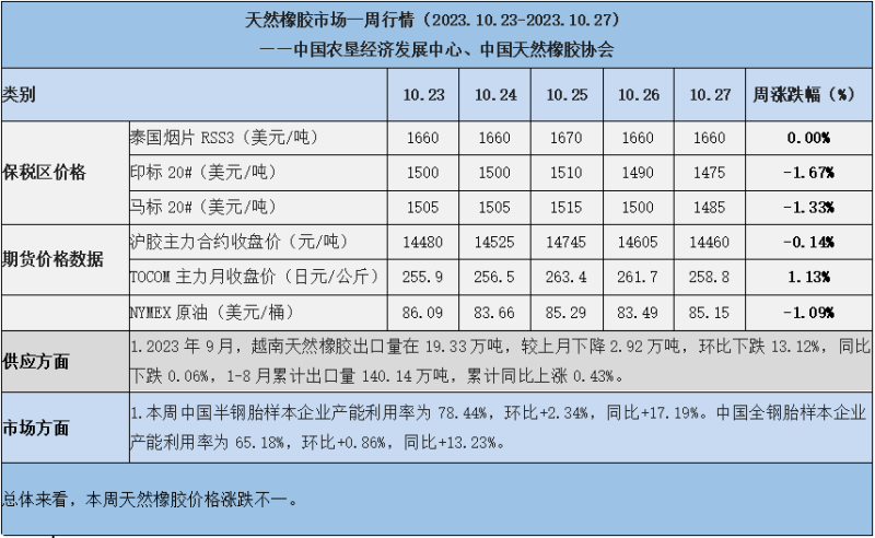 天然橡膠、大豆、玉米市場一周行情(2023.10.23-10.27)