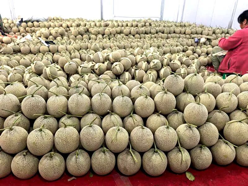 海南果鮮生農(nóng)業(yè)開發(fā)有限公司種植的阿魯斯靜岡網(wǎng)紋瓜豐收。