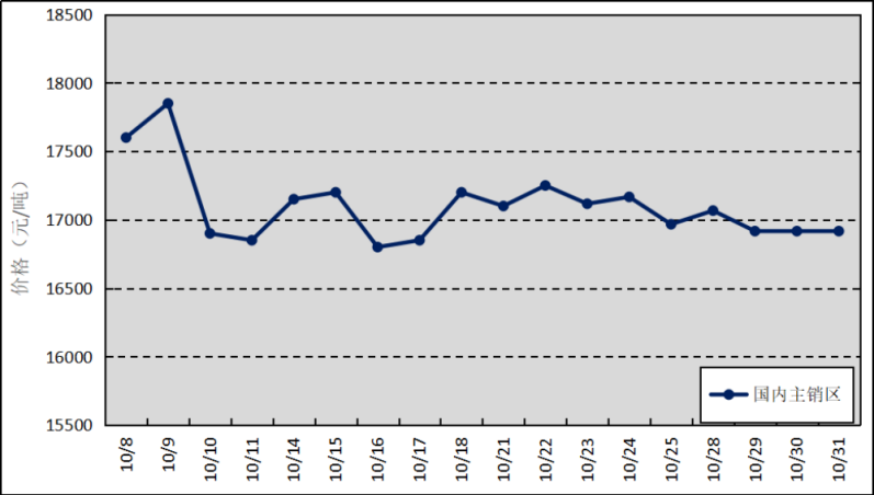 國(guó)內(nèi)主銷區(qū):10月,上海、青島和天津等銷區(qū)市場(chǎng)的國(guó)產(chǎn)全乳標(biāo)準(zhǔn)膠平均價(jià)格為17101元/噸,環(huán)比上漲1202元/噸,最高價(jià)為17850元/噸,最低價(jià)為16800元/噸。