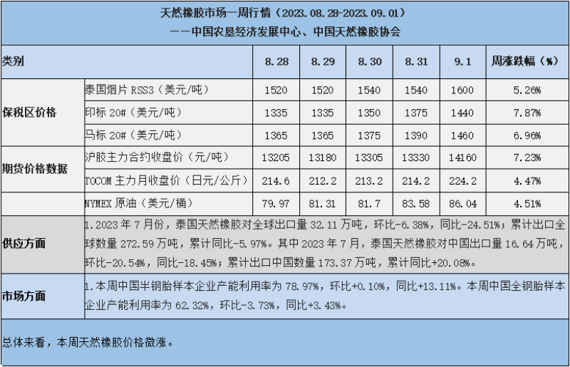 天然橡膠、大豆、玉米市場一周行情(2023.08.28-09.01)
