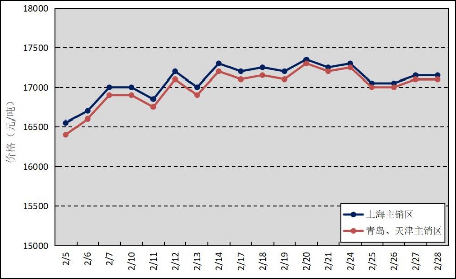 國內(nèi)主銷區(qū):2月,國產(chǎn)全乳標(biāo)準(zhǔn)膠上海市場平均價格17086元/噸,環(huán)比上漲586元/噸,最高價為17350元/噸,最低價為16550元/噸;青島市場和天津市場平均價格17003元/噸,環(huán)比上漲617元/噸,最高價為17300元/噸,最低價為16400元/噸。