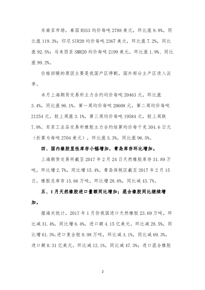 2017年2月份天然橡膠市場(chǎng)監(jiān)測(cè)報(bào)告