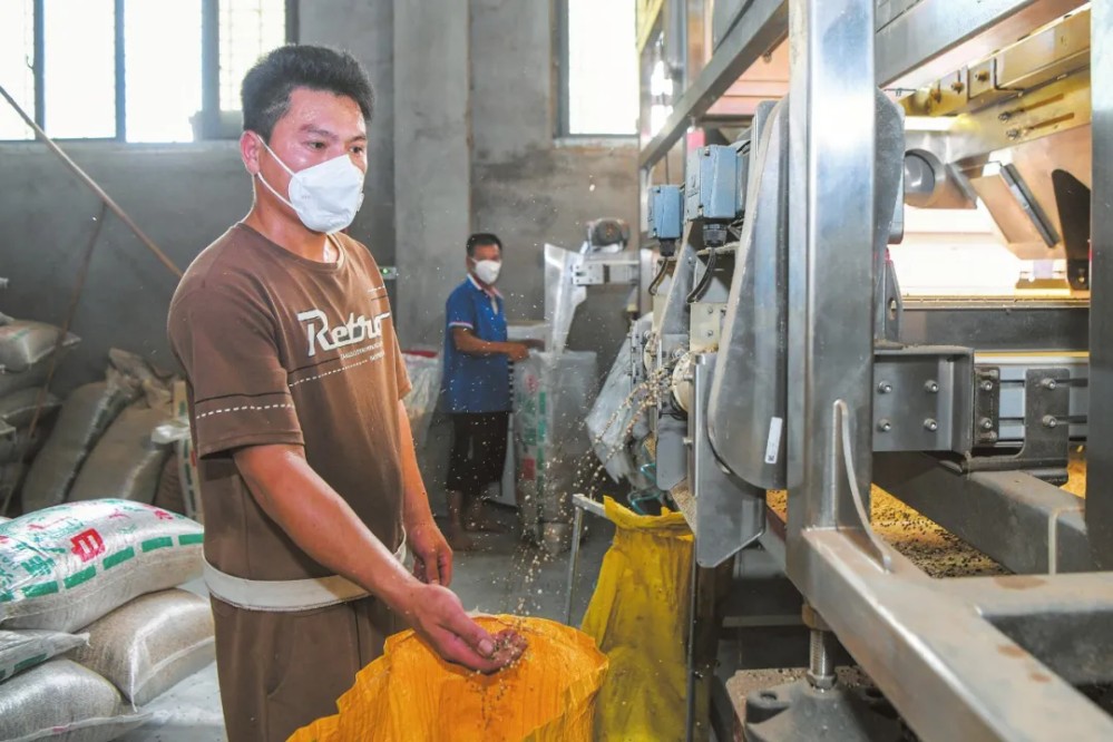 楊廣家中三代深耕胡椒貿(mào)易,如今他打破傳統(tǒng)分散經(jīng)營模式,采用“合作社+加工廠”的產(chǎn)業(yè)化運(yùn)作體系,建成超百畝標(biāo)準(zhǔn)化種植基地,年購銷胡椒規(guī)模達(dá)2000噸。為提升胡椒品質(zhì),楊廣引進(jìn)了風(fēng)選機(jī)、去沙機(jī)、智能色選機(jī)等15臺專業(yè)設(shè)備,構(gòu)建起全流程精細(xì)化加工生產(chǎn)線,日加工能力達(dá)35噸,可產(chǎn)出7萬斤優(yōu)質(zhì)胡椒顆粒。
