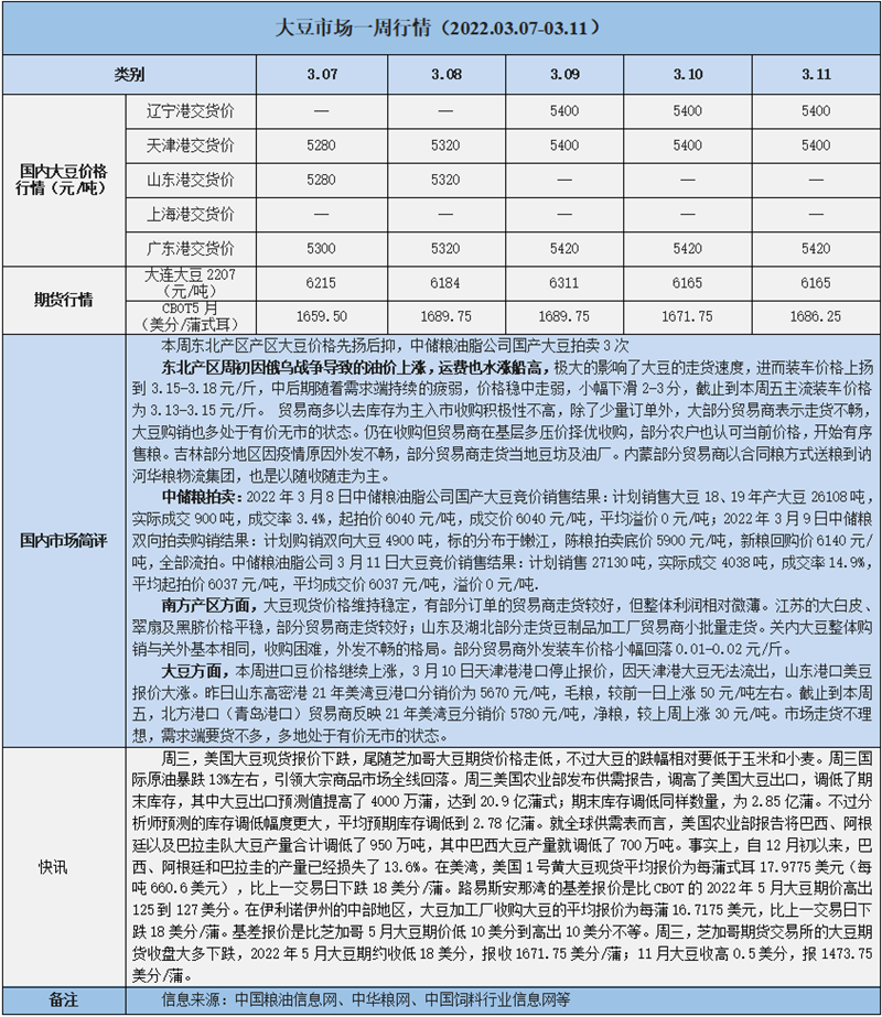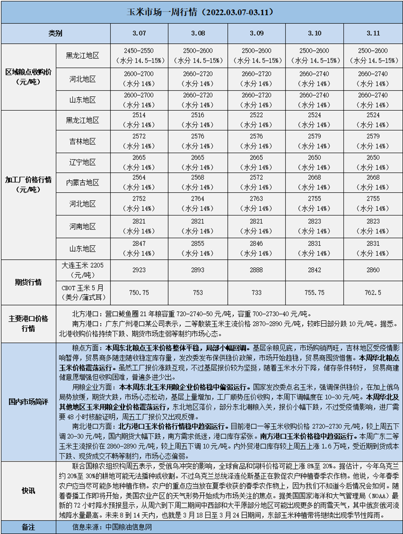 天然橡膠、大豆、玉米市場一周行情(2022.03.07-03.11)