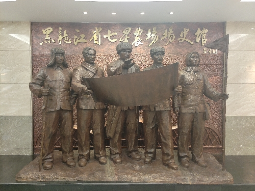 場史館的首廳,用雕塑展示七星發(fā)展歷史,這些雕塑代表的是七星農(nóng)場領(lǐng)導(dǎo)集體和廣大職工群眾集體的縮影。