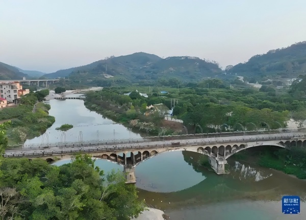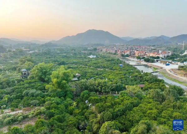 云霄縣下河鄉(xiāng)下河村的楊桃林和周?chē)木坝^(1月3日攝,無(wú)人機(jī)全景照片)。