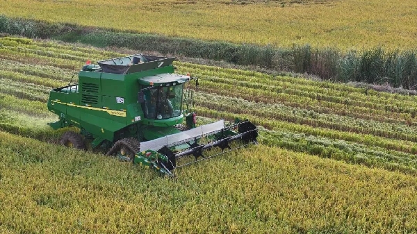 10月9日,蘇墾農(nóng)發(fā)臨海分公司的千畝早熟水稻“武育粳702”正式開鐮,拉開了“三秋”戰(zhàn)役的序幕。田間,搭載“新門道”的大型聯(lián)合收割機(jī)尤為引人注目。據(jù)農(nóng)水中心負(fù)責(zé)人介紹,此次使用的收割機(jī)經(jīng)過改良,采用了雙層割刀,將稻茬留茬高度從30厘米降至20厘米以下,不僅提高了收割質(zhì)量,還省去了后續(xù)滅茬工序,有效降低了作業(yè)成本。同時(shí),為應(yīng)對可能出現(xiàn)的爛地情況,收割機(jī)還搭載了橡膠半鏈軌進(jìn)行測試,以保障搶收進(jìn)度不受影響。臨海抓住晴好天氣窗口,計(jì)劃在2天內(nèi)完成該品種的全部收割,確保顆粒歸倉。