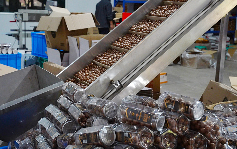 在云南某堅果開發(fā)有限公司的加工廠內(nèi),生產(chǎn)線正全速運轉(zhuǎn)。青果脫皮、清洗篩選、精準烘烤……一道道工序?qū)е嗤练曳嫉孽r果,轉(zhuǎn)化為顆顆飽滿、香氣四溢的成品堅果?!敖衲晡覀児彩召徚?700噸鮮果,加工好的產(chǎn)品正發(fā)往全國各地?!睆S長邵前遠信心滿滿。