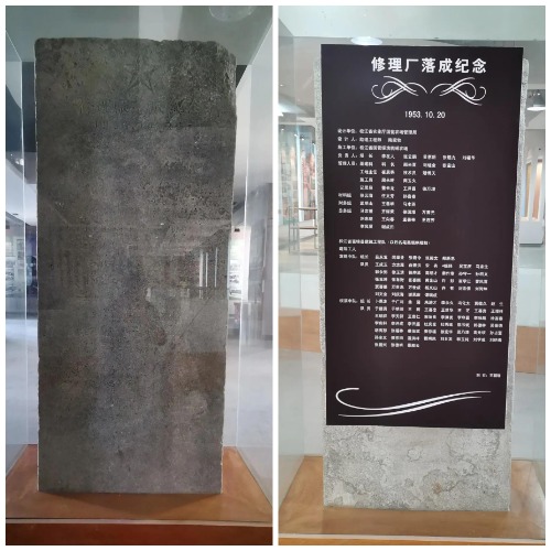 除了修理廠,當(dāng)年建設(shè)者們還新建了宿舍、食堂、辦公室、家屬房等合計近三千平方米的建筑物。廠房落成時,大家歡欣鼓舞,都為自己能參加這樣的工程感到自豪,落成儀式從簡,只放了一掛鞭炮。為了紀(jì)念建場以來第一大工程,施工隊專門從富錦請了一個叫王朝瑞的石匠刻了一個碑,把所有建設(shè)者的名字都刻在了碑上,碑立在廠房正門西南側(cè),作為永恒的紀(jì)念。