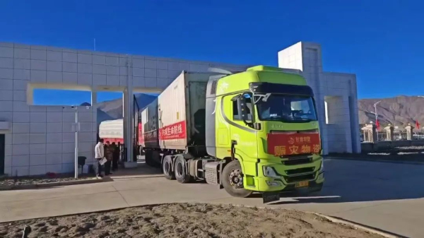1月8日,滿載愛心的牛奶物資自青海西寧啟程,克服高寒、高海拔、缺氧等重重困難,于1月11日順利抵達(dá)日喀則物資接收點(diǎn)。