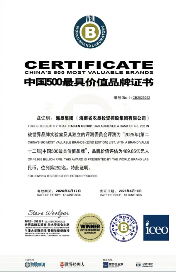品牌建設(shè),無疑是撬動產(chǎn)品價值倍增的有力杠桿。作為海南最大的國有企業(yè)和農(nóng)業(yè)龍頭企業(yè),近年來,海墾集團加快實施“品牌強墾”戰(zhàn)略,結(jié)合“一場一品”工作,積極打造并拓展“HSF海墾集團”主品牌和子企業(yè)品牌矩陣,并在品牌創(chuàng)新、品牌管理、品牌營銷等方面持續(xù)發(fā)力,讓“墾字號”的品牌價值不斷彰顯,品牌效益顯著提升。今年6月,海墾集團登榜中國500最具價值品牌,位列第252名,品牌價值達489.85億元。
