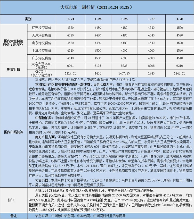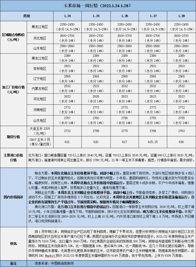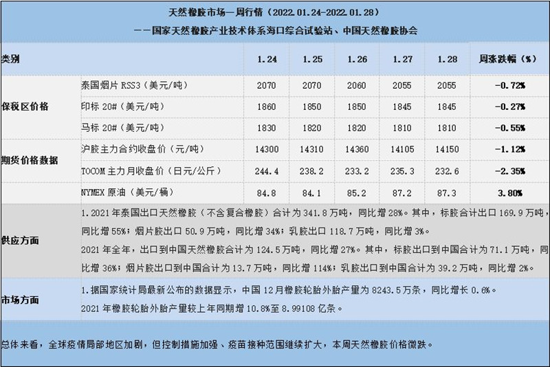 天然橡膠、大豆、玉米市場一周行情(2022.01.24-01.28)