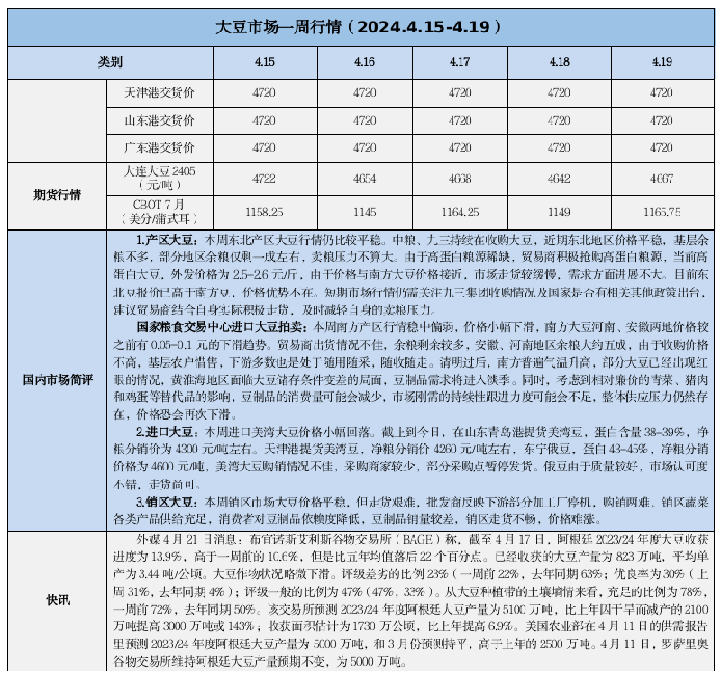 天然橡膠、大豆、玉米市場一周行情(2024.04.15-04.19)