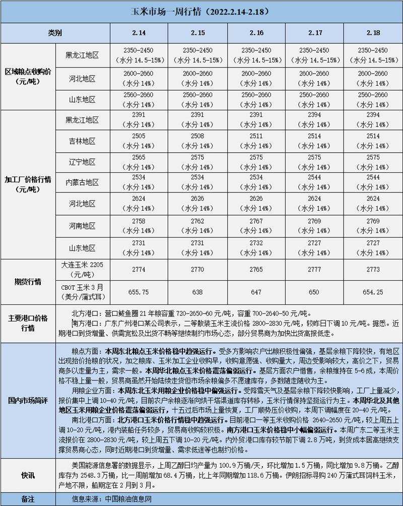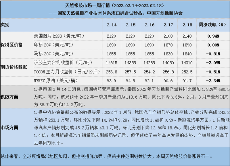 天然橡膠、大豆、玉米市場一周行情(2022.02.14-02.18)