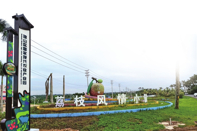 從??诔霭l(fā),沿223國道一路南行,在一片一眼望不到邊的荔枝園旁,一顆碩大的“荔枝”闖入眼簾,旁邊“荔枝風(fēng)情小鎮(zhèn)”幾個(gè)大字,讓人馬上意識(shí)到已抵達(dá)三門坡鎮(zhèn)。