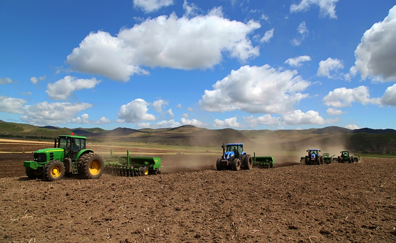 你看,春天的腳步在牧場(chǎng)走過,消融了山間的冰雪、褪去了一冬的寒冷。清早起來,雪白的羊群尋著泛綠的青草漫步在山坡上,星星點(diǎn)點(diǎn)、悠然自得,仿佛天上的白云倒映下的影子。小小的牧場(chǎng),在這一方寧靜的山水之間,伴著裊裊升起的炊煙也慢慢變得生動(dòng)活潑起來。北方的春天,來得遲去得快。在春的尾巴,隆隆的機(jī)聲打破了田野許久的沉寂,一臺(tái)臺(tái)或紅色或綠色的大型拖拉機(jī)牽引著播種機(jī)、鎮(zhèn)壓器往來穿梭,它們用鐵犁劃開沉睡一冬的土地,讓泥土的清香盡情宣泄在天地之間,是農(nóng)墾人在大自然中演奏出的豐收序曲。