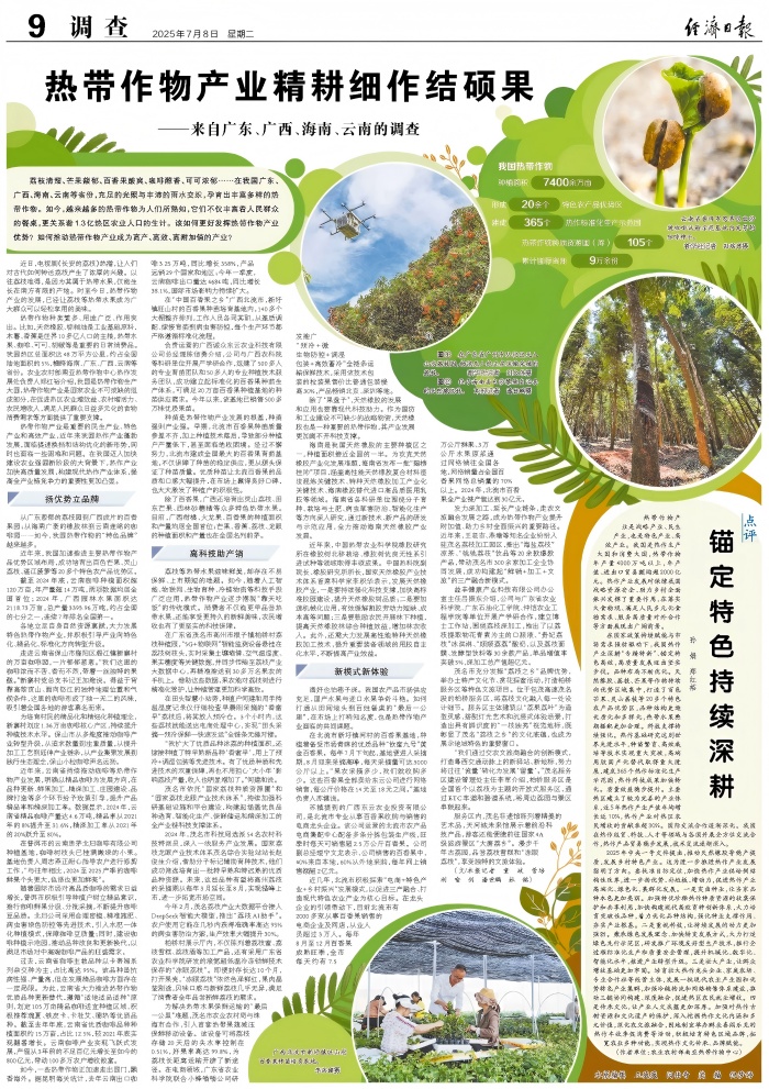 從廣東蔥郁的荔枝園到廣西成片的百香果園;從海南廣袤的橡膠林到云南連綿的咖啡園……如今,我國(guó)熱帶作物的“特色品牌”越來(lái)越多。